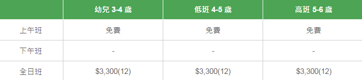 學校有參加「幼稚園教育計劃」,以下列出扣減政府資助后不同班別的全年學費和期數。
