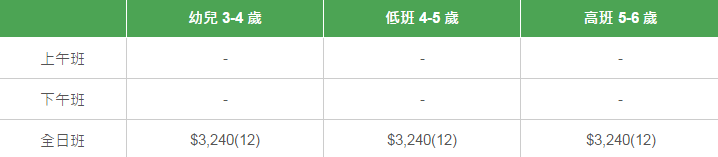 學校有參加「幼稚園教育計劃」,以下列出扣減政府資助后不同班別的全年學費和期數。