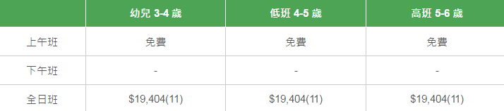 學校有參加「幼稚園教育計劃」,以下列出扣減政府資助后不同班別的全年學費和期數。