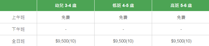學校有參加「幼稚園教育計劃」,以下列出扣減政府資助后不同班別的全年學費和期數。