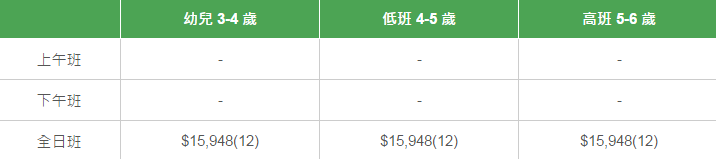 學校有參加「幼稚園教育計劃」,以下列出扣減政府資助后不同班別的全年學費和期數。