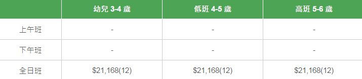 學校有參加「幼稚園教育計劃」,以下列出扣減政府資助后不同班別的全年學費和期數。
