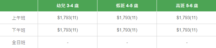 學校有參加「幼稚園教育計劃」,以下列出扣減政府資助后不同班別的全年學費和期數。