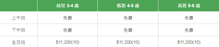 學校有參加「幼稚園教育計劃」,以下列出扣減政府資助后不同班別的全年學費和期數。
