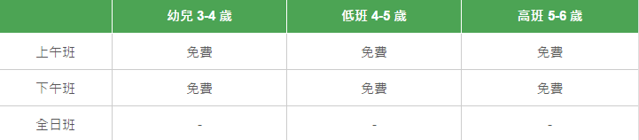 學校有參加「幼稚園教育計劃」,以下列出扣減政府資助后不同班別的全年學費和期數。