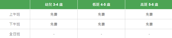 學校有參加「幼稚園教育計劃」,以下列出扣減政府資助后不同班別的全年學費和期數。