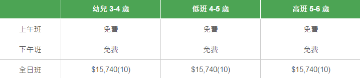 學校有參加「幼稚園教育計劃」,以下列出扣減政府資助后不同班別的全年學費和期數。