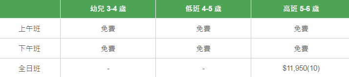 學校有參加「幼稚園教育計劃」,以下列出扣減政府資助后不同班別的全年學費和期數(shù)。