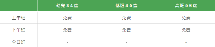 學校有參加「幼稚園教育計劃」,以下列出扣減政府資助后不同班別的全年學費和期數。