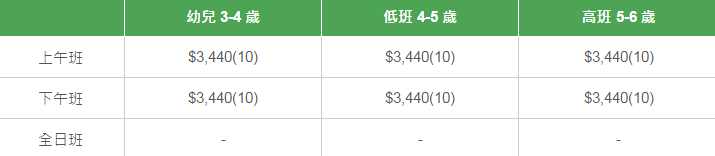 學校有參加「幼稚園教育計劃」,以下列出扣減政府資助后不同班別的全年學費和期數。
