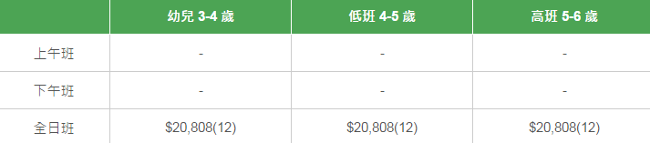 學校有參加「幼稚園教育計劃」,以下列出扣減政府資助后不同班別的全年學費和期數。