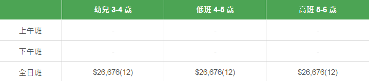 學校有參加「幼稚園教育計劃」,以下列出扣減政府資助后不同班別的全年學費和期數。