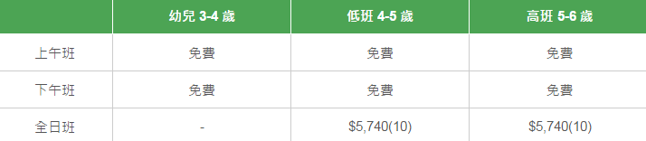 學校有參加「幼稚園教育計劃」,以下列出扣減政府資助后不同班別的全年學費和期數。