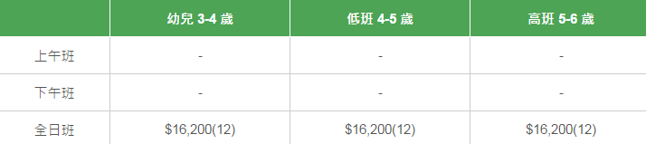 學校有參加「幼稚園教育計劃」,以下列出扣減政府資助后不同班別的全年學費和期數。