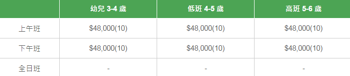 以下列出不同班別的全年學費和期數。