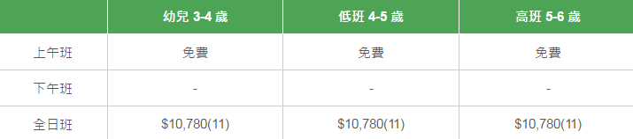 學校有參加「幼稚園教育計劃」,以下列出扣減政府資助后不同班別的全年學費和期數。