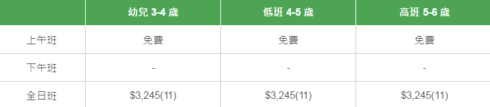 學校有參加「幼稚園教育計劃」,以下列出扣減政府資助后不同班別的全年學費和期數。