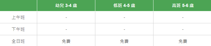 學校有參加「幼稚園教育計劃」,以下列出扣減政府資助后不同班別的全年學費和期數。