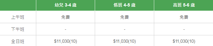 學校有參加「幼稚園教育計劃」,以下列出扣減政府資助后不同班別的全年學費和期數。