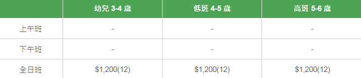 學校有參加「幼稚園教育計劃」,以下列出扣減政府資助后不同班別的全年學費和期數。