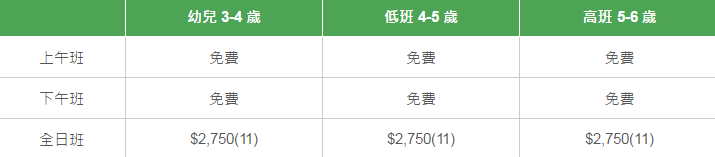 學校有參加「幼稚園教育計劃」,以下列出扣減政府資助后不同班別的全年學費和期數。