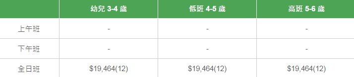 學校有參加「幼稚園教育計劃」,以下列出扣減政府資助后不同班別的全年學費和期數。