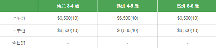 學校有參加「幼稚園教育計劃」,以下列出扣減政府資助后不同班別的全年學費和期數(shù)。