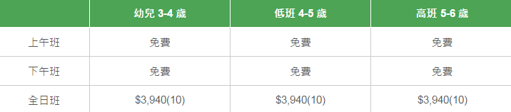 學(xué)校有參加「幼稚園教育計(jì)劃」,以下列出扣減政府資助后不同班別的全年學(xué)費(fèi)和期數(shù)。