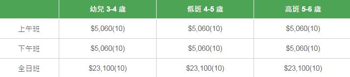 學校有參加「幼稚園教育計劃」,以下列出扣減政府資助后不同班別的全年學費和期數。
