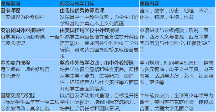學制:第一年在昌平一中學習,第二年、第三年赴美國高中就讀